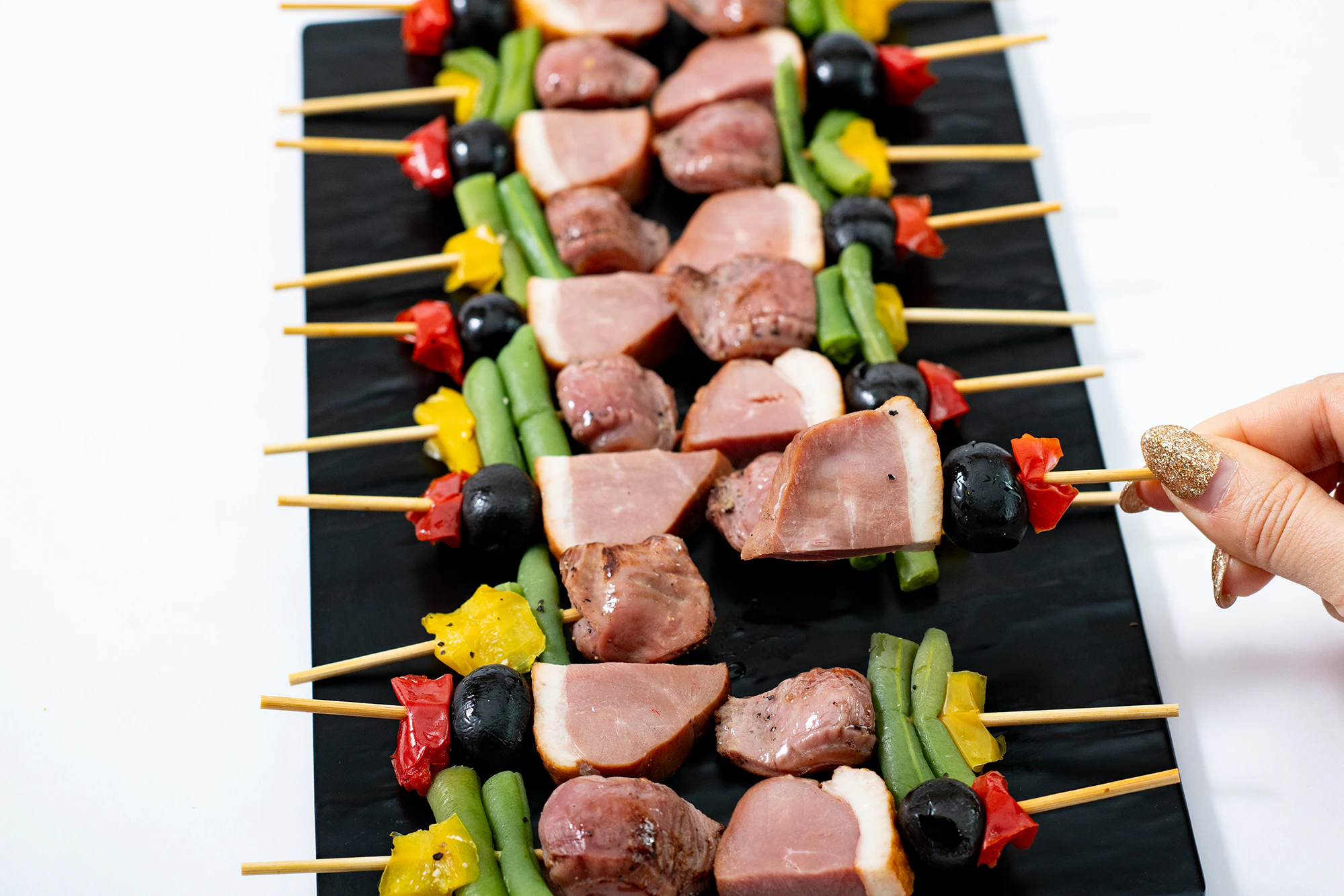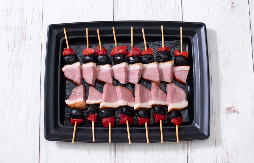 合鴨スモークとオリーブと赤ピーマンのピンチョスL